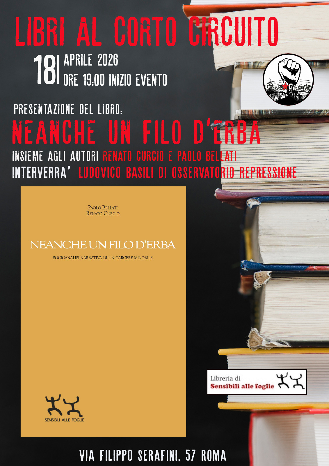Sabato 18 Aprile 2026 Spazio Sociale 100Celle Aperte Via delle Resede 5 Roma dalle 19 presentazione del libro “La Gabbia e il Cielo” Storia e storie degli ultimi minatori di
